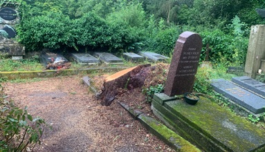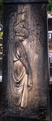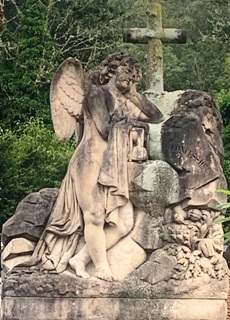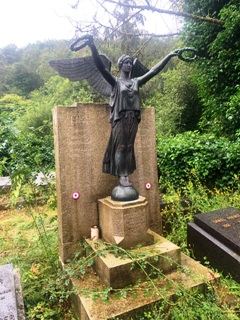 Tout en haut du cimetière, plusieurs tombent sur une esplanade à la végétation dense appartiennent à une même famille.
