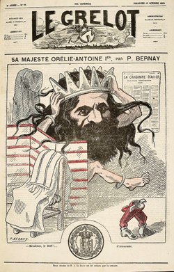 Cette folle aventure aurait pu s’arrêter là mais il n’en fut rien : mort sans alliance ni descendance, son "titre" royal passa à son secrétaire, Achille Laviarde, un administrateur rémois qui prit le nom d’Achille Ier. Il fit signer en 1882, un acte de renonciation à l’héritier naturel, Adrien de Tounens, boucher à Tourtoirac. Bien qu’Antoine Ier ne se rendit jamais en Amérique, il "administra" son royaume dans l’exil, s’inventant des ministres, créant des ordres royaux, et parvenant même à se faire reconnaître par le Gotha et à nommer des consuls. Mort sans enfant, la couronne échut à l’un de ses secrétaires d’Etat, Antoine-Hyppolite Cros.