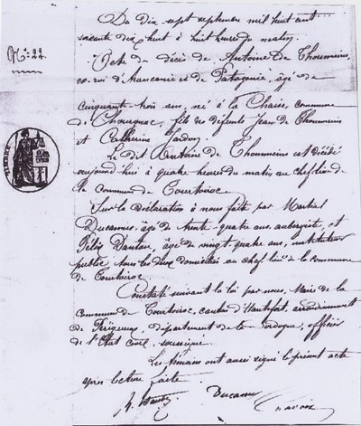 , il se retira chez son neveu établi à Tourtoirac, y mourut et y fut inhumé.