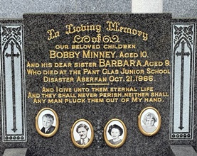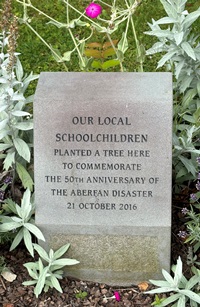 Un jardin commémoratif se dresse sur le site de l’ancienne école primaire de Pantglas. On y trouve des arbres commémoratifs et des bancs dédiés aux victimes.