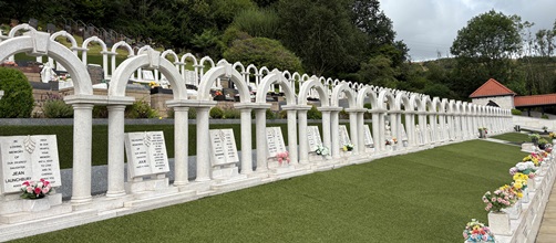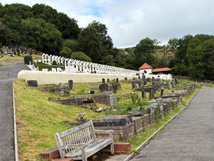 Le monument aux victimes de la catastrophe d’Aberfan, les 144 enfants et adultes, est situé en hauteur, dans la partie du cimetière de Bryntaf.