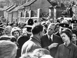 Malgré l’importance de la catastrophe, la reine Élisabeth II refusa tout d’abord de se rendre dans le village sinistré, déclenchant de vives critiques dans la presse britannique et la classe politique. Le seul membre de la famille royale à s’y précipiter fut Lord Snowdon, mari de sa sœur Margaret. Sous la pression, notamment de son gouvernement travailliste, Élisabeth II se résolut finalement à faire le déplacement seulement huit jours après. Son entourage confia plus tard que cette réaction tardive resta un des plus grands regrets de la souveraine, qui revint par la suite à plusieurs reprises à Aberfan.