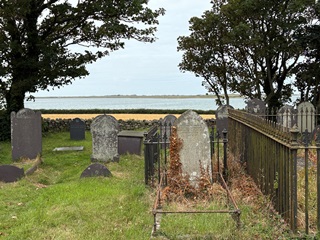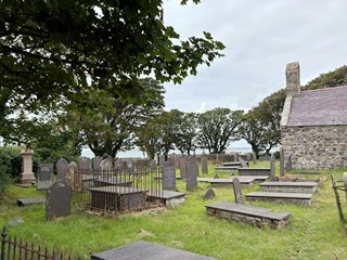 Le minuscule cimetière attenant atteste du faible nombre de patronyme gallois : presque toutes les tombes portent le nom de Jones ! La vue porte sur la mer très proche.