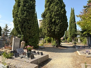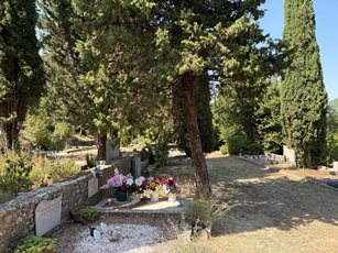 C’est contre elle qu’est adossé le cimetière du village, pittoresque et ombragé de cyprès.