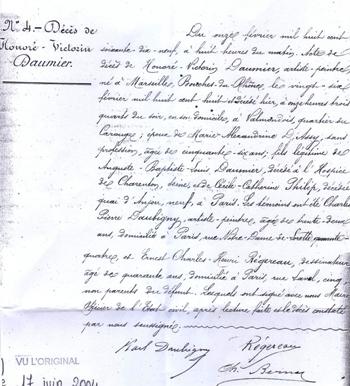 Acte de décès d’Honoré Daumier - Valmondois.