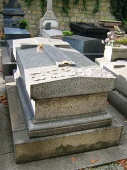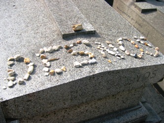 Son nom sur la tombe est quasiment invisible, et on peut passer de nombreuses fois à côté sans la voir. C’est sans doute pour cette raison que,régulièrement, ses admirateurs alignent des cailloux ou des marrons pour écrire son nom.