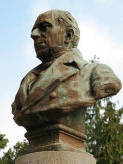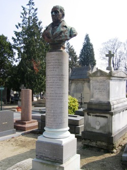 Sa tombe figure une colonne surmontée d’un buste en bronze par le sculpteur grec Lazaros Sochos. Elle n’est plus qu’un cénotaphe depuis que corps fut ramené en 1877 au cimetière Premier d’Athènes.