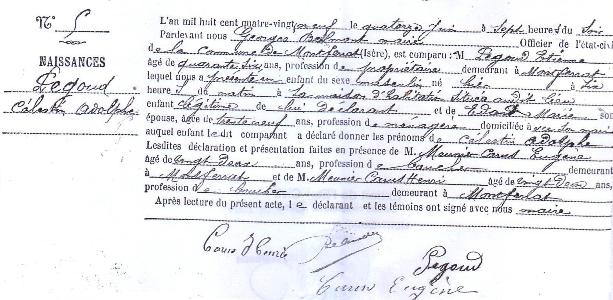 Acte de naissance d’Adolphe Pégoud - Montferrat.