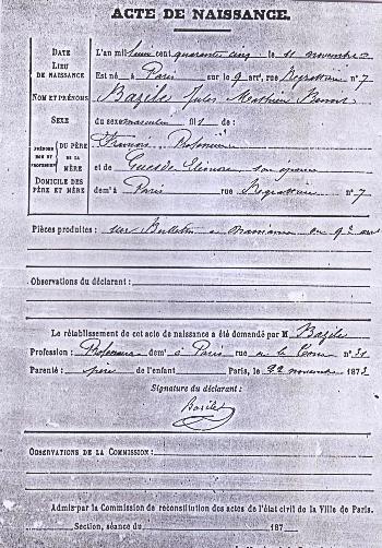 Reconstitution de l’acte de naissance de Jules Guesde - Paris.