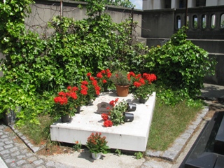 Leur tombeau occupe l’un des angles du fond du cimetière. L’élément végétal, changeant selon les saisons, y occupe toujours une large place.