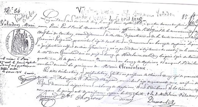 Acte de naissance de Suzanne Valadon - Bessines-sur-Gartempe (87).
