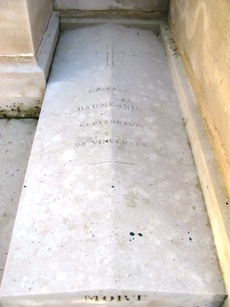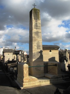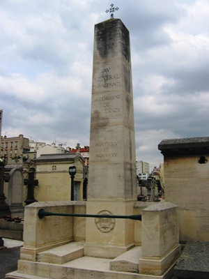 Il repose sous un obélisque dans la partie la plus ancienne du cimetière. On remarquera, sur sa tombe, le petit bas-relief qui reproduit le donjon de Vincennes.
