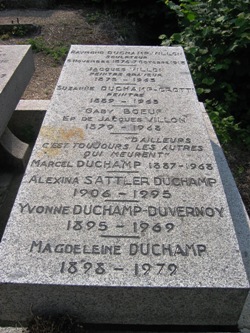 Sa tombe possède pour épitaphe : "D’ailleurs, c’est toujours les autres qui meurent". Il est inhumé auprès des siens, en particulier ses frères et soeurs : le sculpteur Raymond Duchamp-Villon (1876-1918), les peintres Jacques Villon (Gaston Duchamp : 1875-1963) et Suzanne Duchamp (1889-1963) ainsi que leur grand-père, Emile Frédéric Nicolle (1830-1894), peintre également. (L)