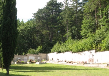Le cimetière est à chercher à la Paillette : une route y monte sur la gauche après le château de Montjoux.