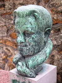 - Le buste en bronze de Louis Crestey, par Vaillant-Martin (bordure nord),