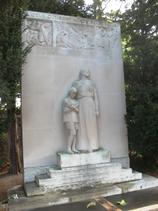 – Au fond du cimetière, entre la 6ème et la 7ème division, sont regroupés le monument aux morts (œuvre de 1924 réalisée par Paul Landowski) et plusieurs monuments commémoratifs dédiés aux victimes de la guerre de différents corps ou corporations (pompiers, pupilles, employés communaux, blanchisseurs…). Dans la 9ème division, un autre monument aux morts est dédié aux victimes de la Seconde Guerre mondiale.