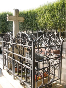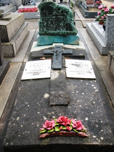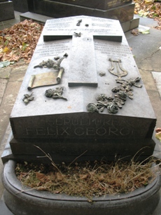 – Le tombeau de famille GEORGE regroupant Félix (1858-1928) poète et membre de la Société des Gens de Lettres, Octavie (1859-1917), membre de la même société et Anna (+1929), artiste peintre. La tombe est recouverte de roses en bronze et de poèmes de Félix George, qui ne semble pas avoir eu une renommée durable !