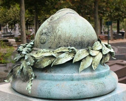 - Un casque de poilu et une couronne de lauriers en bronze sur la tombe Delperier (1ère division),