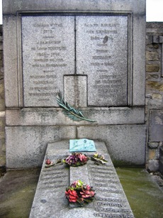 – Henry Vernon ESMOND (1869-1922) : acteur et dramaturge anglais, il commença sa carrière d’acteur à Londres en 1889 où il eut plusieurs succès dans des comédies. Il écrivit des pièces de théâtre, des comédies pour la plupart. Il joua souvent avec son épouse, la comédienne Eva Moore. Ses pièces furent bien reçues aux États-Unis où neuf d’entre elles furent produites sur Broadway entre 1899 et 1907. Il mourut brusquement à Paris d’une pneumonie. Il était le père de l’actrice Jill Esmond. Sa tombe, apparemment anonyme (son identité est cachée par un buis), est ornée d’un magnifique bas-relief en bronze par Albert Toft.