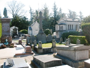 – La forte communauté anglo-saxonne de la ville a imprimé sa présence dans le cimetière, et les divisions A et B ont des airs de cimetière américain.