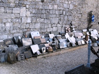 Le petit cimetière est encore autour de son église. Le long du mur et autour du calvaire,