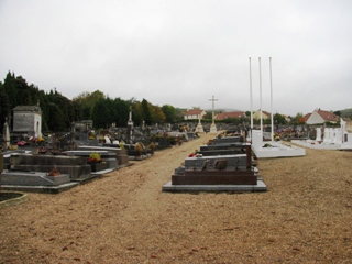 – A l’entrée du cimetière, la tombe de celui qui en fut le fossoyeur durant 26 ans.