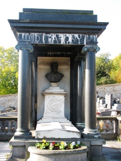 – Jean-Baptiste LAUNAY (1768-1827) : Directeur des Ponts de Paris, ancien officier d’artillerie spécialisé dans la fonte des métaux, Jean-Baptiste Launay supervisa la fonte des ponts des Arts, du Louvre, d’Iéna et du Jardin des Plantes (actuel pont d’Austerlitz). En 1803, Napoléon, qui souhaitait faire ériger une colonne en l’honneur de la Grande Armée avec la fonte des canons pris à l’ennemi, confia ce difficile travail à Launay qui exécuta, en 1810, la colonne Vendôme, réplique de la colonne Trajane à Rome. Retiré à Savigny, il se consacra à ses ouvrages et à ses inventions, parmi lesquelles une pompe à incendie expérimentée place Beauvau en 1819. Avec lui repose son gendre, l’éditeur Nicolas RORET (1797-1860), auteur de l’Encyclopédie Roret, 300 volumes environ, un par sujet, traitant de l’histoire et de la pratique de tous les métiers. Pour celà, il fit appel à des spécialistes et les plus grands professeurs et scientifiques de l’époque n’hésitèrent pas à participer à la réalisation de cette collection. Le trait de génie de Roret, qui répondant aux besoins du grand public fit école au siècle suivant, fut de concevoir un format “de poche”, mais sans jamais sacrifier d’information. Chaque ouvrage compilait l’ensemble du savoir sur le sujet jusqu’aux moindres détails techniques et était pourvu d’un grand nombre de planches dépliantes illustrées. Le succès populaire de cette encyclopédie à laquelle personne n’avait jamais pensé, fut indiscutable et se prolongea jusqu’au début du XXe siècle.