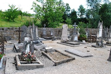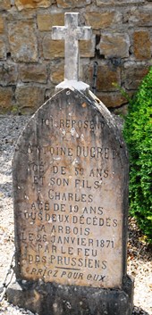 Peu classique, on trouve dans le cimetière la tombe de Antoine et Charles Ducret, décédés en janvier 1871 "par le feu des Prussiens".