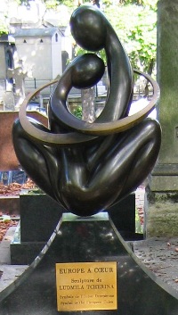 Sur sa tombe figure Europe à cœur, reproduction en résine d’une sculpture monumentale officiellement choisie par la Communauté européenne pour symboliser l’Europe unie, et qui fut placée sur le parvis du Parlement Européen à Strasbourg (une autre version en résine avait été installée devant le pavillon européen de l’Exposition universelle de Séville).