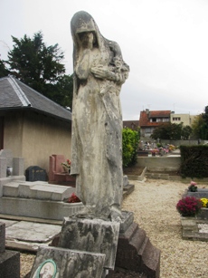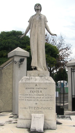 – A l’entrée du cimetière, une statue imposante interpelle le visiteur. Ici repose l’industriel Joseph Favier (1814-1886), dont la propriété de Bry, selon son vœu, devint une maison de retraite. Une statue de la Résurrection en marbre orne cette tombe, érigée en 1887. Elle est l’œuvre du sculpteur italien Enrico Chiaradia, auteur du monument de Victor-Emmanuel sur le capitole à Rome.