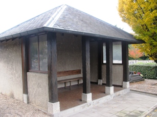 – Caractéristique insolite et pratique de ce cimetière, jamais vu ailleurs encore : plusieurs abris (semblables à des abris de bus) sont disséminés sur le lieu.