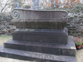 Sa tombe est coiffée d’un casque Adrian de granit.