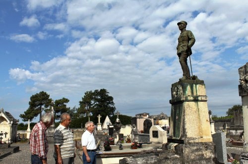 En cette période de la Toussaint, bien des personnes passent par le cimetière du Tâtre pour entretenir, fleurir des tombes. « Au cours de l’été 2008, la construction d’un monument funéraire en forme de pyramide de cinq mètres de hauteur, en granit rose d’Espagne, a un certain temps interpellé les visiteurs, puis tout le monde s’est habitué à la vue de la future dernière demeure d’un couple de retraités parisiens » commentait le maire, Bernard Desse. Mais non loin, plus personne ne porte attention non plus à cet étrange tombeau au socle en pierre, surmonté d’une remarquable statue en bronze de 1,75 mètre de hauteur, représentant un militaire, le lieutenant Henri Seguin. Aucune fleur n’a été déposée...