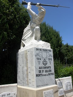 On notera également la présence d’un étonnant monument aux morts aux accents assez bellicistes !