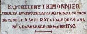 La vedette du lieu est bien évidemment Barthélemy THIMONNIER (1793-1857). Fils d’un teinturier, il mit au point en 1829