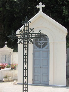 – A l’entrée du cimetière, sous une étrange tombe en mosaïque fleurdelisée en mauvais état reposent Louis de Bourbon-Siciles (1873-1940) et son épouse. Titré comte de Roccaguglielma, il était le descendant de la dynastie royale des Deux-Siciles et de celle, impériale, du Brésil.