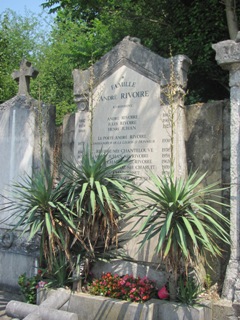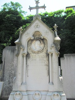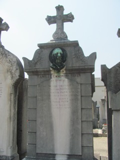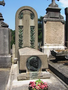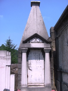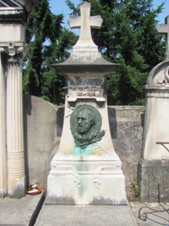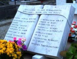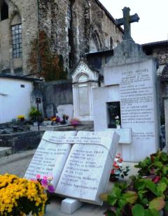 On cherchera en vain, fort malheureusement, la sépulture du père de Guignol, le marionnettiste Laurent MOURGUET (1769-1844). Même si c’est à la ville de Lyon que ce dernier est irrémédiablement attaché, c’est bien à Vienne que mourut le créateur de la célèbre marionnette, mais également de son épouse Madelon et de son indissociable Gnafron. L’actuel cimetière n’existait pas encore : les sources sont muettes mais il semble qu’il ait été inhumé dans un cimetière paroissial dans le bas de la ville, désormais disparu. Reste ici son souvenir. Ses descendants, mais également d’autres célèbres marionnettistes qui reprirent sa suite au Théâtre de Guignol, sont inhumés au cimetière de Brindas (69).