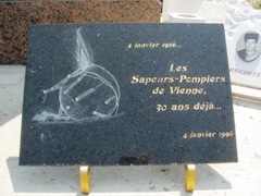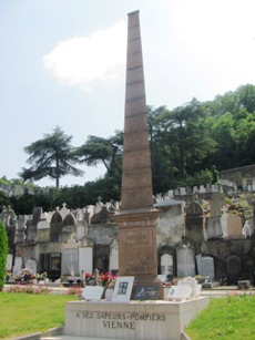 4 janvier 1966, La raffinerie de Feyzin, dans le département du Rhône, explosa. L’accident avait débuté par une fuite de propane sous une sphère de stockage mal conçue. L’incendie se déclencha par le contact de la poche de gaz avec un véhicule. Cet incendie entraîna les explosions successives des sphères de stockage de propane. Cette catastrophe fit 18 morts, dont 11 pompiers et 77 blessés. Au-delà de la raffinerie, les dégâts matériels incluèrent des toitures endommagées jusqu’à 2,2 km, et des vitres brisées à plus de 8 km. L’explosion fut perçue jusqu’à 16 km en aval de la raffinerie. Parmi les victimes figuraient quatre pompiers de Vienne appelés en renfort. Un obélisque rappelle leur souvenir dans ce cimetière.