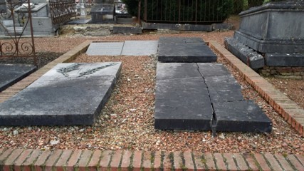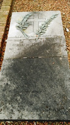 Il repose sous une dalle en fort mauvaise état, au sein d’un enclos familial.