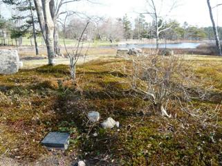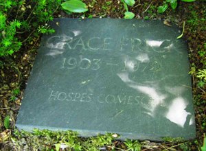 Trois dalles funéraires s’y trouvent : l’une vouée à Grace Frick porte l’inscription, reprise à Mémoires d’Hadrien, hospes comesque (elle est l’hôte et la compagne). La seconde ne cache qu’une plaque de malachite brisée, cadeau de Yourcenar à Jerry Wilson, le compagnon des dernières années, qui mourut du sida en 1986. L’inscription, sur la tranche, en grec, ??????? ???? (Saphron Eros), qui signifie selon Marguerite Yourcenar : le calme, l’intelligent amour. Enfin, la troisième, gravée partiellement avant son décès, est celle recouvrant ses cendres et qui met en exergue une phrase de Zénon, protagoniste de L’Œuvre au Noir, et résumant ses espoirs écologiques : « Plaise à Celui qui Est peut-être de dilater le cœur de l’homme à la mesure de toute la vie ».