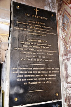 Son épitaphe en l’église Saint-Louis de Rochefort porte : « Hanc nascentem urbem ligeam invenit / Lapideam reliquit » qui signifie « Il trouva la ville naissante en bois / Il l’a laissa en pierre ». Avec lui repose sa fille, Catherine Bégon, qui fut la mère de l’amiral de la Galissonnière.
