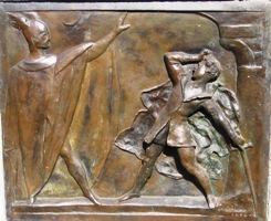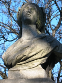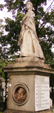 – La statue et le médaillon en bronze de la tombe Falcoianu au cimetière Bellu de Bucarest (Roumanie).