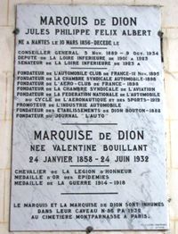 Qui ne connaît pas la de Dion-Bouton ? Dans l’imaginaire collectif, elle est devenue le prototype de l’ancêtre de toutes les automobiles, la vieille guimbarde rutilante qui fleure bon la Belle époque. S’il fut bien un pionnier, le comte, puis marquis Jules-Albert de DION (1856-1946) ne fut pourtant pas le seul. Avec son associé Georges Bouton (inhumé à Puteaux) et Charles Trépardoux, il fonda la société des automobiles De Dion-Bouton à Puteaux en 1883. Il fut ainsi, pendant une petite période, le plus grand fabricant automobile au monde, puis, après la Première Guerre mondiale, le principal fabricant français d’autorails.