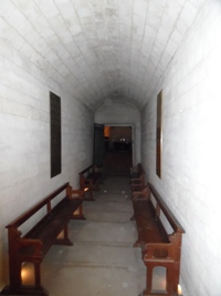 – sur les parois, 10 alvéoles de sept cercueil en enfeu (il reste un emplacement vide uniquement). Au pied de ces alvéoles, d’autres plaques signalent les anciens gouverneurs.