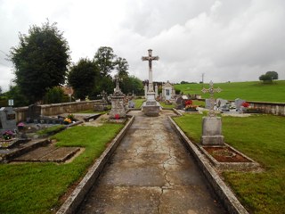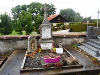 Petit cimetière tout en longueur au milieu des champs, c’est sans difficulté que l’on débusquera la sépulture de la personnalité du lieu.