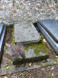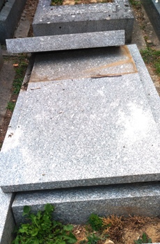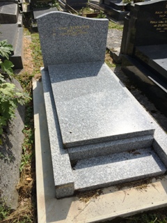 Une vieille tombe en ciment avec une plaque toute en dorures sur fond noir qui donne un indice sur un évènement tragique dont elle fut la seule victime :