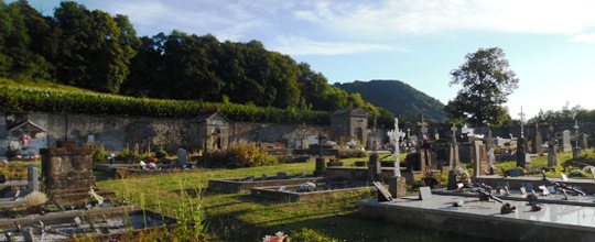 Joli site campagnard sur fond de montagnes pour le petit cimetière de Marmanhac.