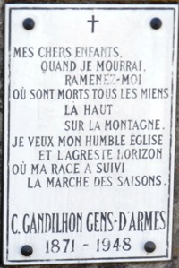 Une plaque rapporte ses derniers mots à ses enfants leur demandant de le ramener dans sa terre natale.