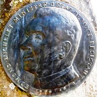 A l’extérieur de la chapelle, une stèle à sa mémoire porte un médaillon par Albert de Jaeger.