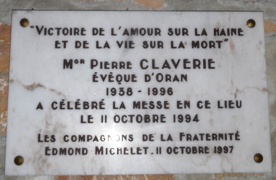 Au mur, plusieurs plaques : une pour son épouse, une pour lui, l’indication d’une messe célébrée en ce lieu par l’évêque d’Oran en 1994, celle des déportés de Dachau.